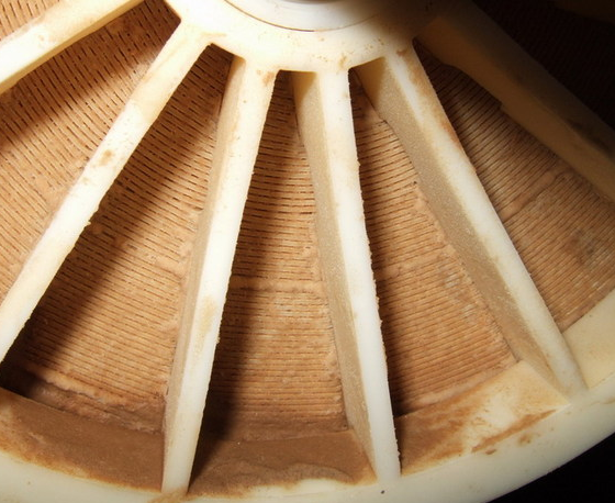 通過拆卸末段末支膜元件,通??梢栽谀ぴ嗣妗⒛ざ税宓忍幱^察到垢類物質(zhì),對膜元件進行控水后稱重,膜元件的重量會比新膜增加。